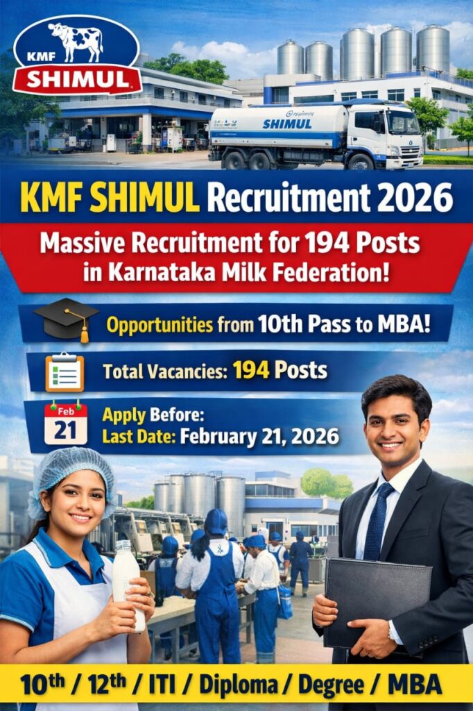 KMF Recruitment 2026: ಕರ್ನಾಟಕ ಹಾಲು ಒಕ್ಕೂಟದಲ್ಲಿ 194 ಹುದ್ದೆಗಳಿಗೆ ಅರ್ಜಿ ಆಹ್ವಾನ – ಸಂಪೂರ್ಣ ಮಾಹಿತಿ ಇಲ್ಲಿದೆ ಕರ್ನಾಟಕದಲ್ಲಿ ಸರ್ಕಾರಿ ಅಥವಾ ಸಹಕಾರಿ ಕ್ಷೇತ್ರದಲ್ಲಿ ಸ್ಥಿರ …