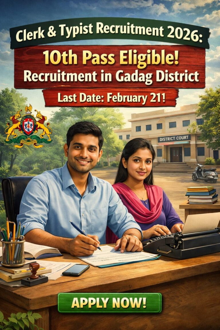 Apply Now: Clerk & Typist ಹುದ್ದೆಗಳಿಗೆ ನೇಮಕಾತಿ – 10ನೇ ಪಾಸ್ ಸಾಕು! ಕರ್ನಾಟಕದಲ್ಲಿ ಸರ್ಕಾರಿ ಉದ್ಯೋಗ ಹುಡುಕುತ್ತಿರುವ ಅಭ್ಯರ್ಥಿಗಳಿಗೆ ಉತ್ತಮ ಅವಕಾಶ ಬಂದಿದೆ. ಗದಗ …