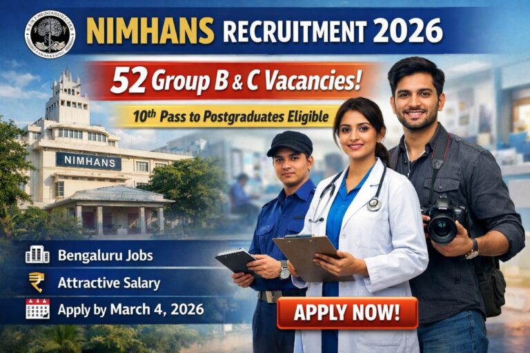 🏥 National Institute of Mental Health and Neurosciences Recruitment 2026: 52 Group B & C ಹುದ್ದೆಗಳು – 10ನೇ ಪಾಸ್ ರಿಂದ …