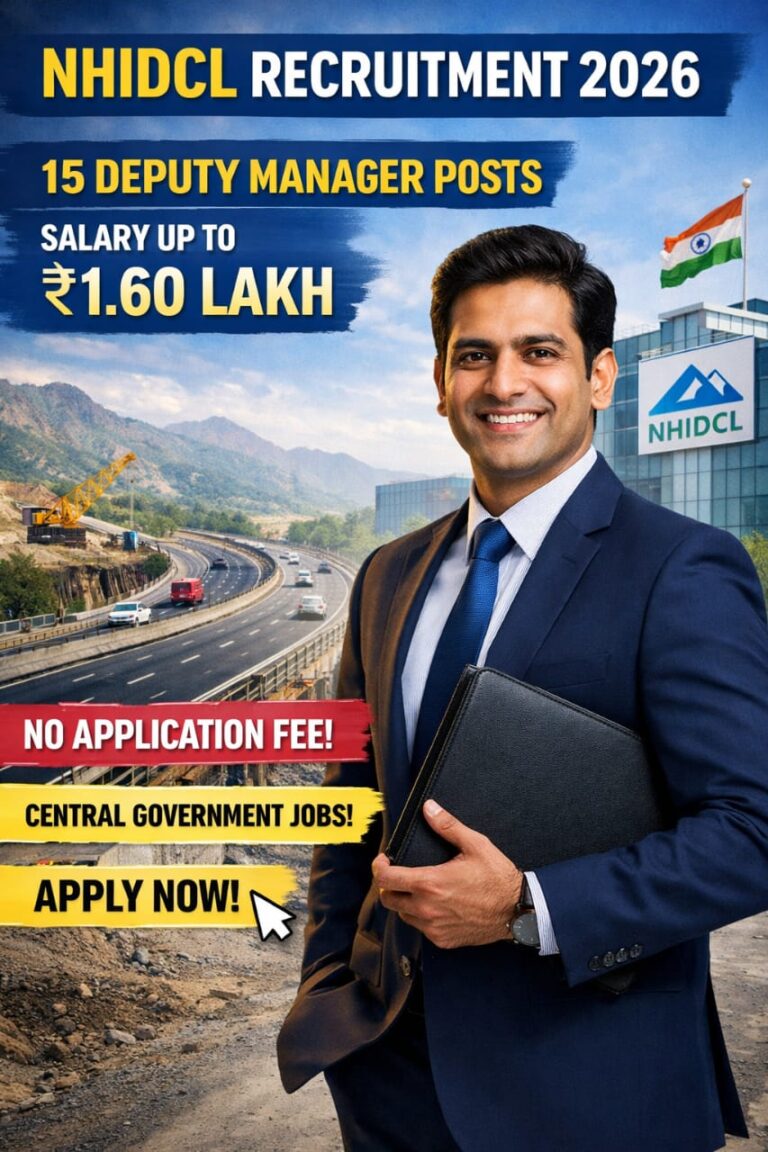 NHIDCL Recruitment 2026: ₹1.60 ಲಕ್ಷ ಸಂಬಳದ 15 ಉಪ ವ್ಯವಸ್ಥಾಪಕ ಹುದ್ದೆಗಳು – ಅರ್ಜಿ ಶುಲ್ಕ ಇಲ್ಲ, ಕೇಂದ್ರ ಸರ್ಕಾರದ ಭರ್ಜರಿ ಅವಕಾಶ!