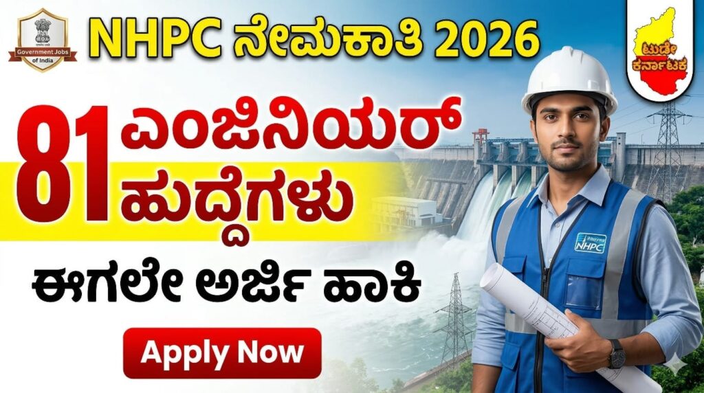 NHPC Recruitment 2026: 81 ಟ್ರೈನಿ ಎಂಜಿನಿಯರ್ ಹುದ್ದೆಗಳು ಖಾಲಿ – ಎಂಜಿನಿಯರಿಂಗ್ ಮಾಡಿದವರಿಗೆ ಕೇಂದ್ರ ಸರ್ಕಾರದ ಉದ್ಯೋಗ ಅವಕಾಶ