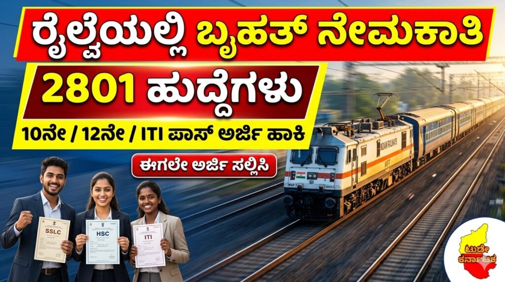ರೈಲ್ವೆಯಲ್ಲಿ 2801 ಹುದ್ದೆಗಳ ಬೃಹತ್ ನೇಮಕಾತಿ: 10ನೇ, 12ನೇ, ITI ಪಾಸ್ ಅಭ್ಯರ್ಥಿಗಳಿಗೆ ಸುವರ್ಣಾವಕಾಶ