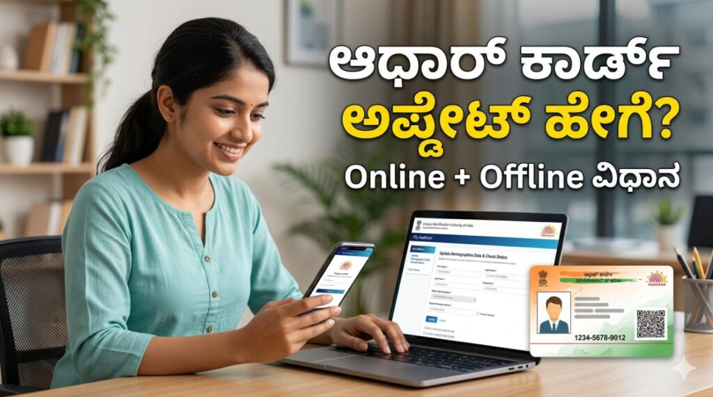 ಆಧಾರ್ ಕಾರ್ಡ್ ಅಪ್ಡೇಟ್ ಹೇಗೆ ಮಾಡುವುದು? Online + Offline ವಿಧಾನ 2026 ಸಂಪೂರ್ಣ ಗೈಡ್