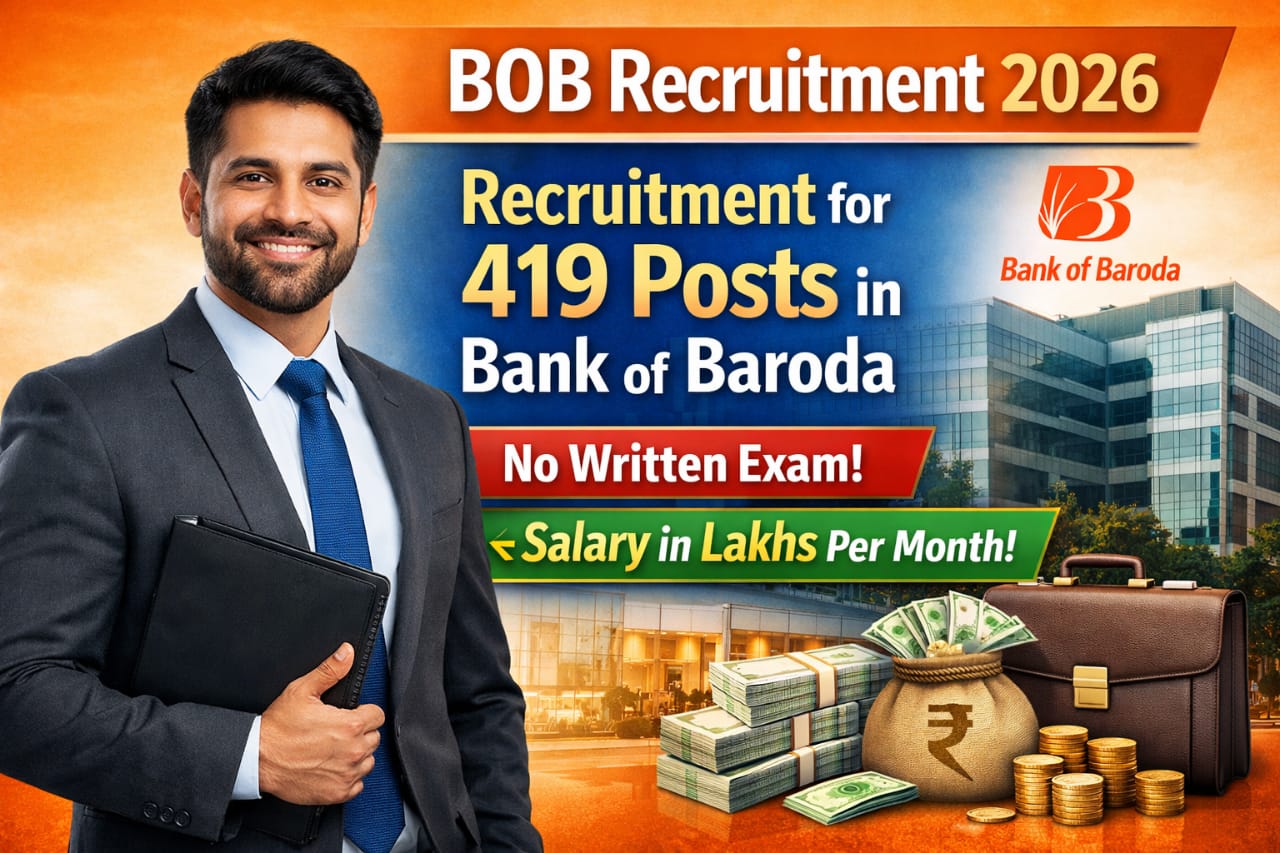 BOB Recruitment 2026: ಬ್ಯಾಂಕ್ ಆಫ್ ಬರೋಡಾದಲ್ಲಿ 419 ಹುದ್ದೆಗಳ ನೇಮಕಾತಿ – ಲಿಖಿತ ಪರೀಕ್ಷೆ ಇಲ್ಲ, ತಿಂಗಳಿಗೆ ಲಕ್ಷ ಸಂಬಳ!