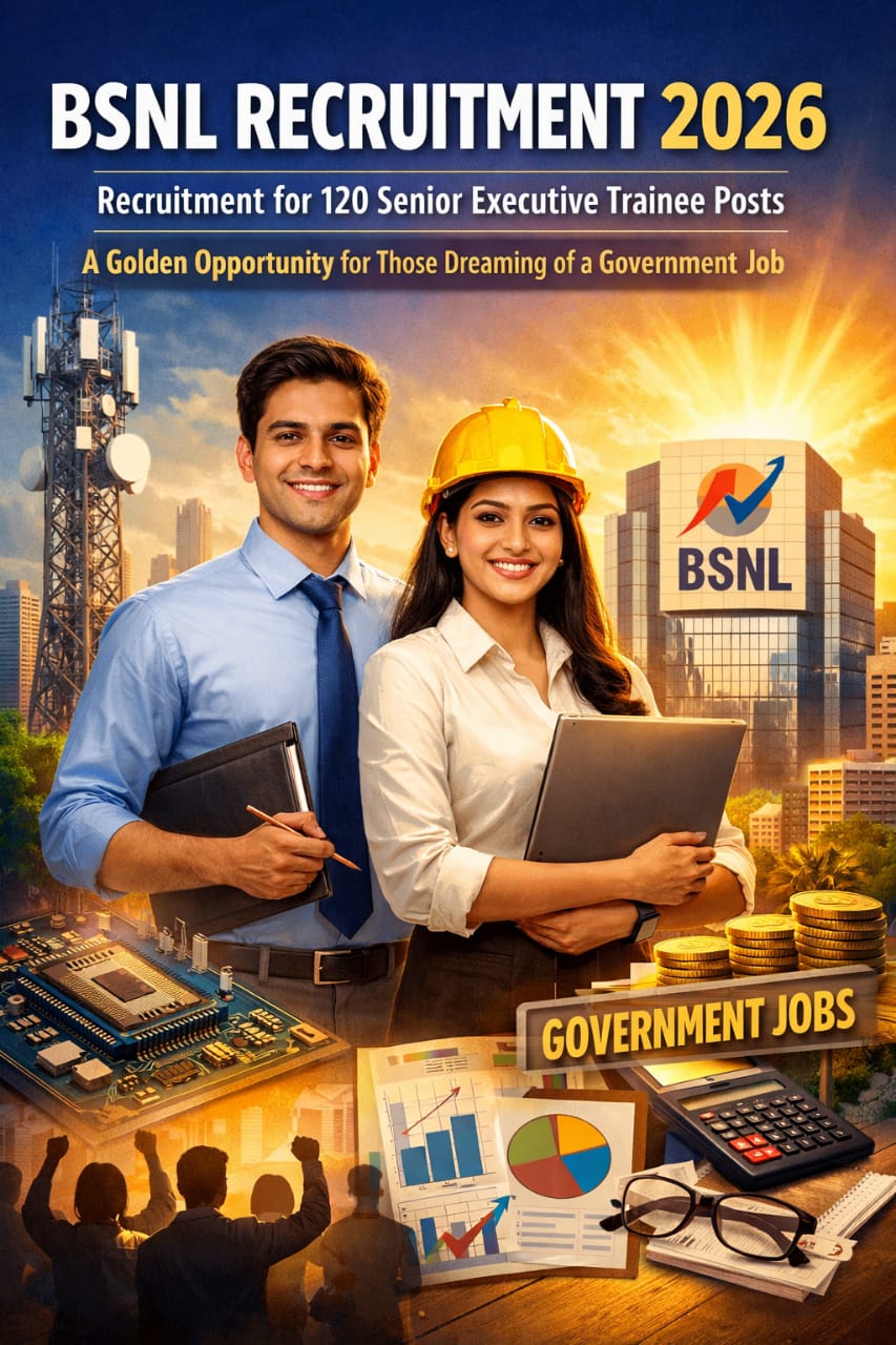 ಸರ್ಕಾರಿ ಸ್ವಾಮ್ಯದ ಪ್ರಮುಖ ಟೆಲಿಕಾಂ ಸಂಸ್ಥೆಯಾದ ಭಾರತ ಸಂಚಾರ ನಿಗಮ ನಿಯಮಿತ (BSNL) 2026ನೇ ಸಾಲಿನ ಪ್ರಮುಖ ನೇಮಕಾತಿ ಅಭಿಯಾನವನ್ನು ಅಧಿಕೃತವಾಗಿ ಪ್ರಕಟಿಸಿದೆ. ಈ ನೇಮಕಾತಿಯಡಿ ಒಟ್ಟು 120 ಸೀನಿಯರ್ ಎಕ್ಸಿಕ್ಯುಟಿವ್ ಟ್ರೈನಿ (Senior Executive Trainee – SET) ಹುದ್ದೆಗಳಿಗೆ ಅರ್ಹ ಅಭ್ಯರ್ಥಿಗಳಿಂದ ಅರ್ಜಿಗಳನ್ನು ಆಹ್ವಾನಿಸಲಾಗಿದೆ. ಎಂಜಿನಿಯರಿಂಗ್ ಹಾಗೂ ಹಣಕಾಸು ಕ್ಷೇತ್ರದಲ್ಲಿ ಪದವಿ ಪಡೆದಿರುವ ಯುವಕರಿಗೆ ಕೇಂದ್ರ ಸರ್ಕಾರಿ ವಲಯದಲ್ಲಿ ಉತ್ತಮ ಉದ್ಯೋಗಾವಕಾಶ ಪಡೆಯಲು ಇದು ದೊಡ್ಡ ಅವಕಾಶವಾಗಿದೆ.