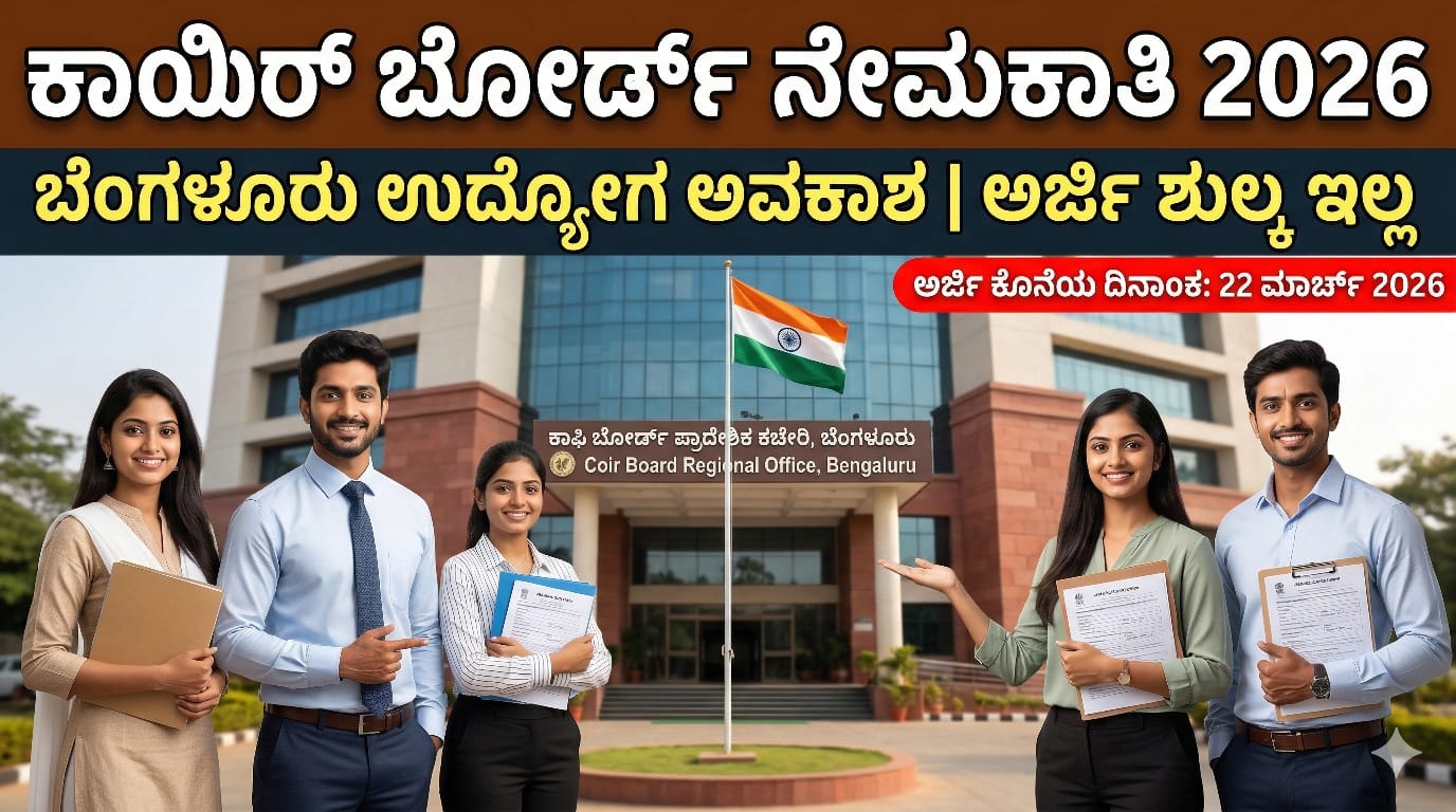 Coir Board Recruitment 2026: ಬೆಂಗಳೂರು ಸರ್ಕಾರಿ ಉದ್ಯೋಗ ಅವಕಾಶ! ಅರ್ಜಿ ಶುಲ್ಕ ಇಲ್ಲ – 40 ವರ್ಷ ವಯಸ್ಸಿನವರೆಗೂ ಅರ್ಜಿ ಹಾಕಬಹುದು