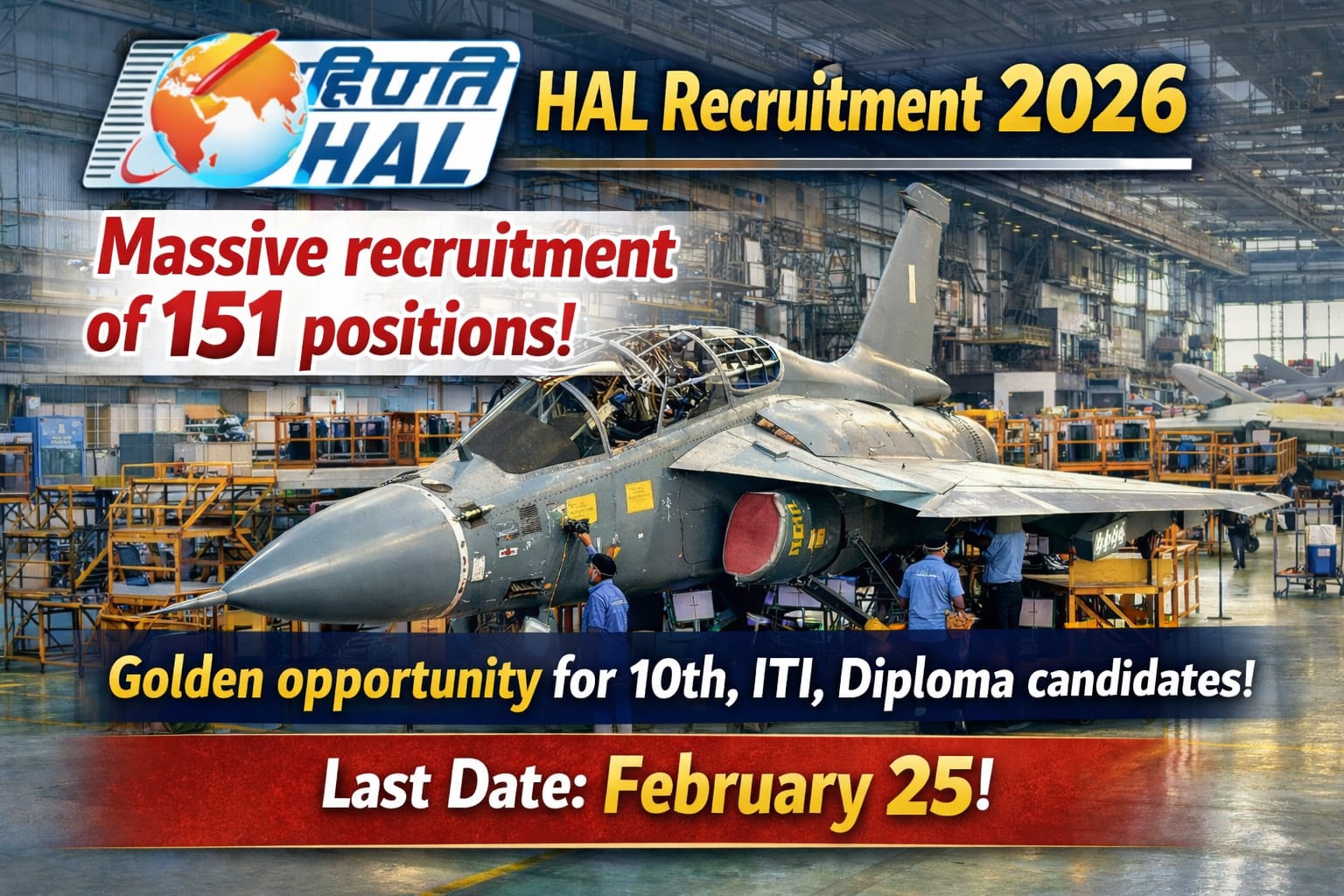 HAL Recruitment 2026: 151 ಹುದ್ದೆಗಳ ಭರ್ಜರಿ ನೇಮಕಾತಿ – 10th, ITI, Diploma ಅಭ್ಯರ್ಥಿಗಳಿಗೆ ಸುವರ್ಣಾವಕಾಶ, ಫೆಬ್ರವರಿ 25 ಕೊನೆಯ ದಿನ!
