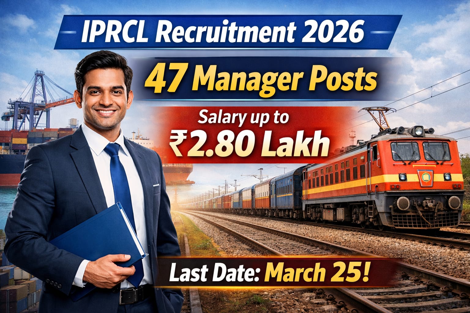 Indian Port Rail & Ropeway Corporation Limited (IPRCL) 2026 ನೇ ಸಾಲಿನ ನೇಮಕಾತಿ ಅಧಿಸೂಚನೆಯನ್ನು ಪ್ರಕಟಿಸಿದೆ. ದೇಶದ ಪ್ರಮುಖ ಪೋರ್ಟ್ ಮತ್ತು ರೈಲ್ವೆ ಸಂಪರ್ಕ ಯೋಜನೆಗಳನ್ನು ನಿರ್ವಹಿಸುವ ಈ ಪ್ರತಿಷ್ಠಿತ ಸಂಸ್ಥೆಯಲ್ಲಿ 47 ಮ್ಯಾನೇಜರ್ ಹುದ್ದೆಗಳು ಖಾಲಿ ಇದ್ದು, ಅರ್ಹ ಅಭ್ಯರ್ಥಿಗಳಿಂದ ಅರ್ಜಿ ಆಹ್ವಾನಿಸಲಾಗಿದೆ.
