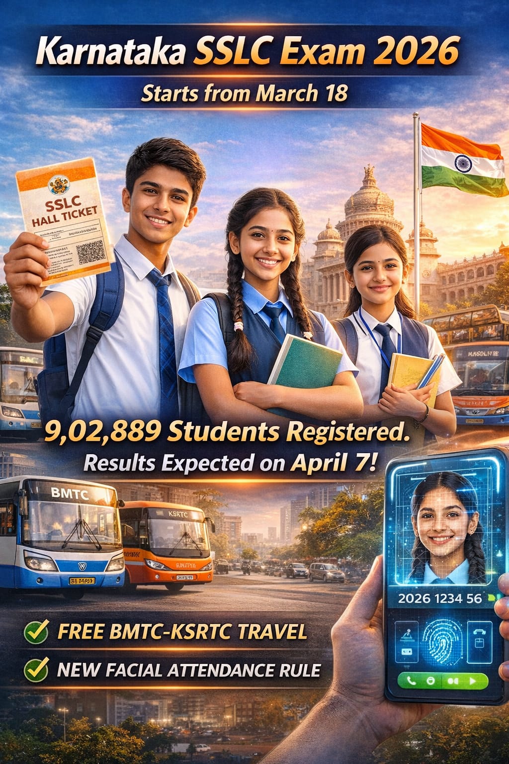 🎓 SSLC Exam 2026 Big Update: ಮಾರ್ಚ್ 18ರಿಂದ ಪರೀಕ್ಷೆ ಆರಂಭ – ಏಪ್ರಿಲ್ 7ರಂದು ಫಲಿತಾಂಶ? ಈ ಬಾರಿ ಭಾರಿ ಬದಲಾವಣೆಗಳು!