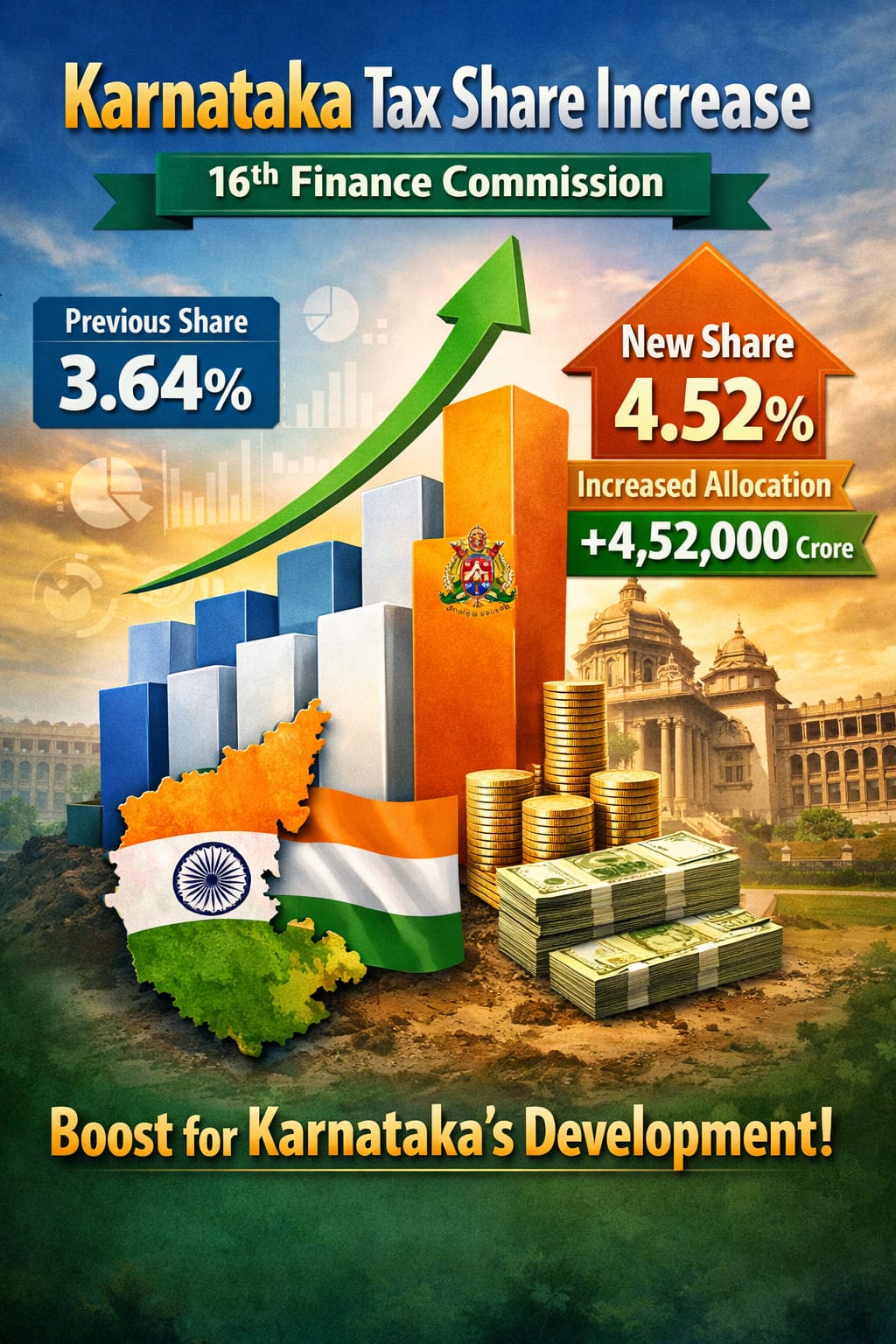 ಟ್ಯಾಕ್ಸ್ ಪಾಲಿನಲ್ಲಿ ಕರ್ನಾಟಕಕ್ಕೆ ಅತಿಹೆಚ್ಚು ಏರಿಕೆ: 16ನೇ ಹಣಕಾಸು ಆಯೋಗದ ಹೊಸ ಸೂತ್ರವೇ ಕಾರಣ