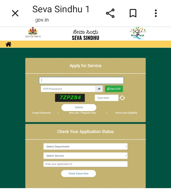 Step 1: Seva Sindhu Portal open ಮಾಡಿ