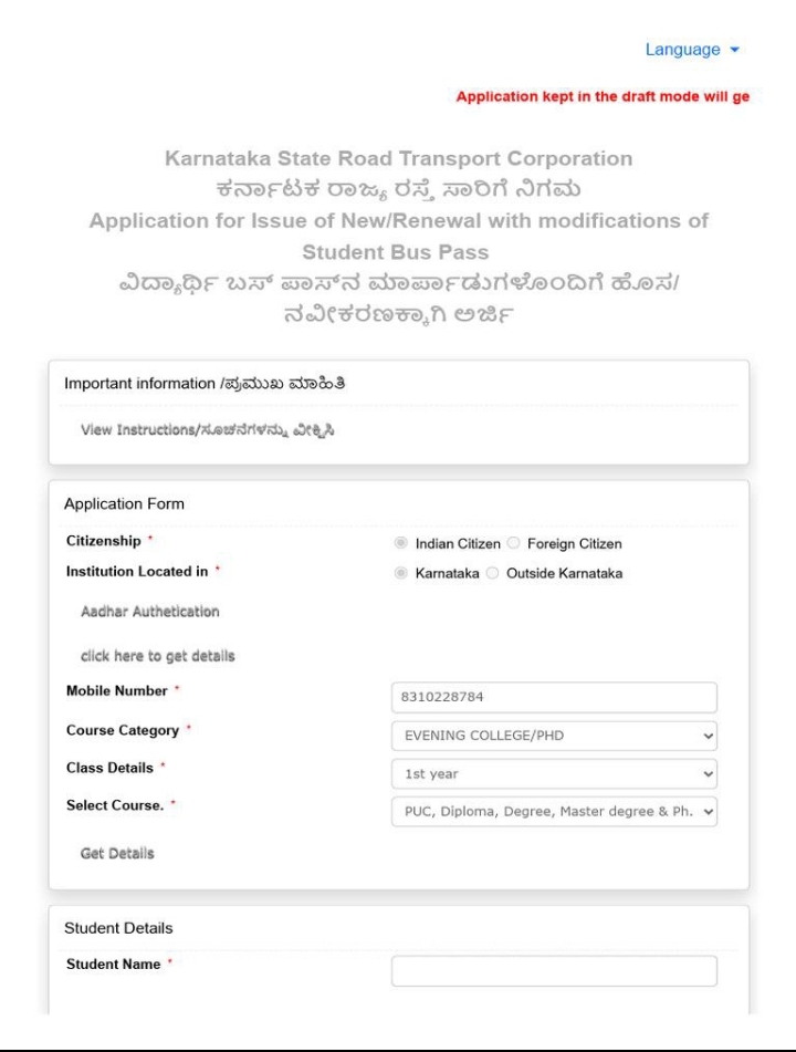 Step 4: Bus Pass Application ಆಯ್ಕೆಮಾಡಿ