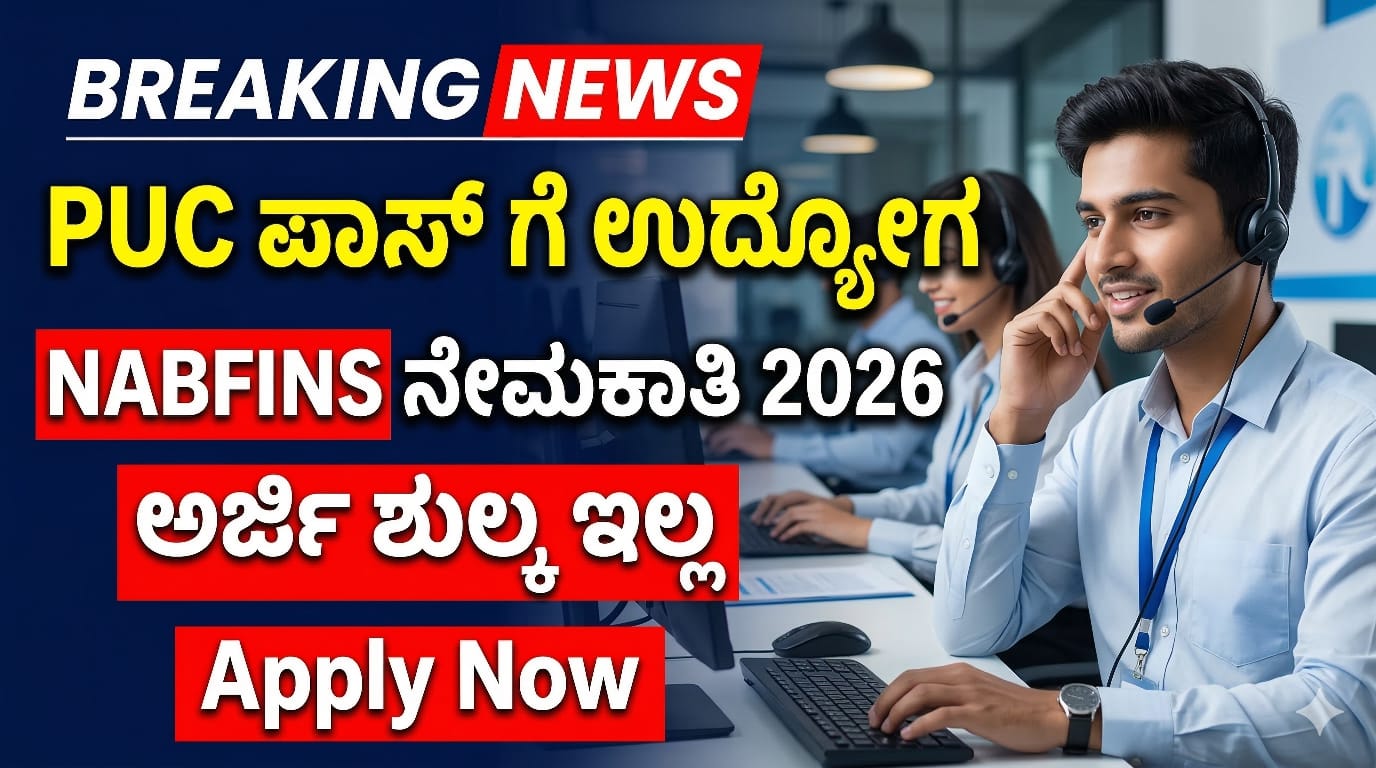 PUC ಪಾಸ್ ಮಾಡಿದವರಿಗೆ ಬೆಂಗಳೂರಿನಲ್ಲಿ ಭರ್ಜರಿ ಉದ್ಯೋಗ! NABFINS Recruitment 2026 – ಅರ್ಜಿ ಶುಲ್ಕ ಇಲ್ಲ, ಇಂಟರ್ವ್ಯೂ ಮೂಲಕ ನೇರ ಆಯ್ಕೆ