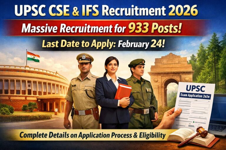 UPSC CSE & IFS Recruitment 2026 :ಅಧಿಸೂಚನೆ ಬಿಡುಗಡೆ: 933 ಹುದ್ದೆಗಳ ಭರ್ಜರಿ ನೇಮಕಾತಿ – ಫೆಬ್ರವರಿ 24 ಅರ್ಜಿ ಕೊನೆಯ ದಿನ