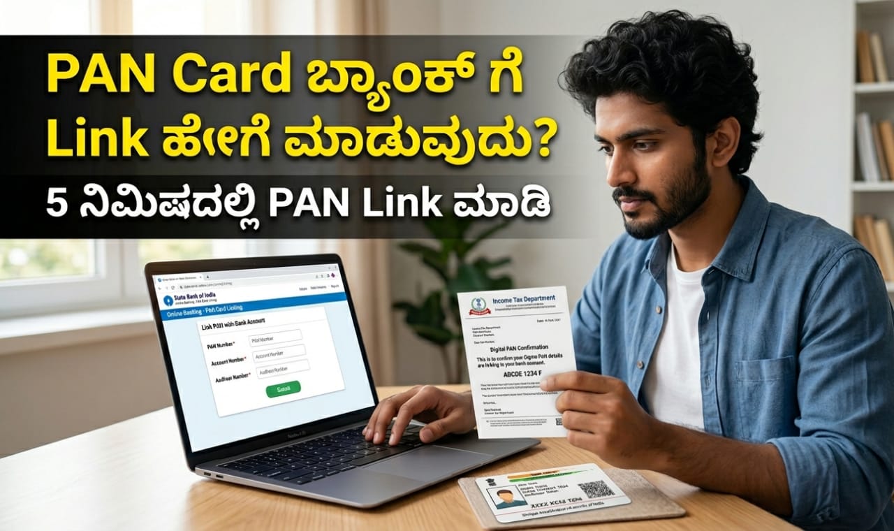 PAN card ಅನ್ನು ಬ್ಯಾಂಕ್ account ಗೆ link ಮಾಡುವುದು ತುಂಬಾ ಸರಳ ಮತ್ತು ಮುಖ್ಯ ಕೆಲಸವಾಗಿದೆ. ನೀವು ಇನ್ನೂ ಮಾಡಿಲ್ಲದಿದ್ದರೆ, ಈಗಲೇ online ನಲ್ಲಿ 5 ನಿಮಿಷದಲ್ಲಿ complete ಮಾಡಬಹುದು.